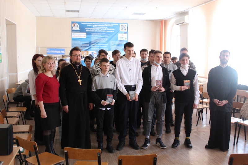 В начале встречи к студентам и преподавателям техникума обратился благочинный Острогожского церковного округа иерей Алексий Курганский. Отец Алексий напомнил историю, связанную с книгопечатанием на Руси, и подчеркнул значимость книги в целом, её важность для развития личности человека, подчеркнул так же важность, православной книги для духовного становления христианина.