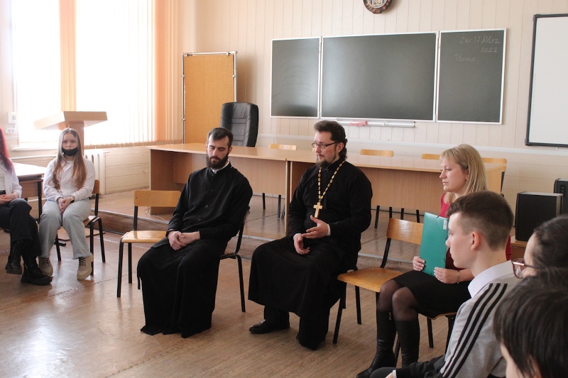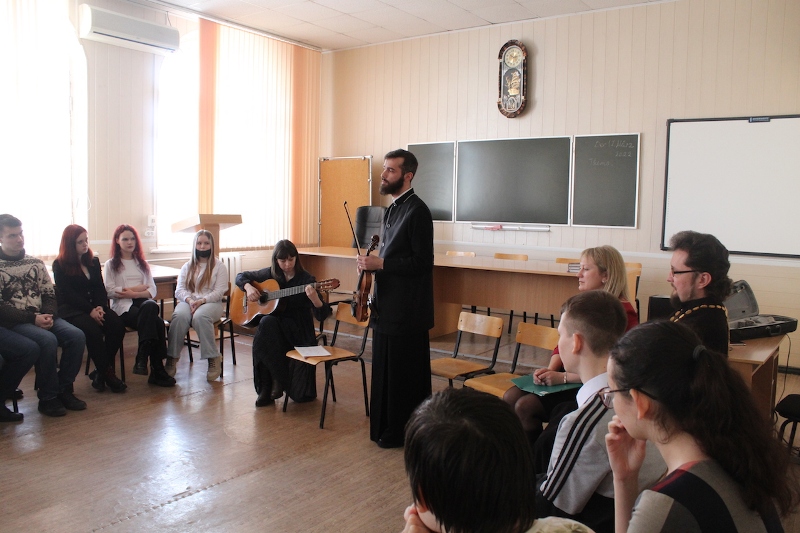 Далее к учащимся обратился прибывший на мероприятие руководитель отделов Россошанской епархии по культуре и работе с молодежью иерей Александр Рогава. Он провёл беседу со студентами о взаимоотношениях в обществе, как личные взгляды человека влияют на его жизненные ориентиры. В основу своего выступления отец Александр взял личностные качества поэта Николая Гумилева.