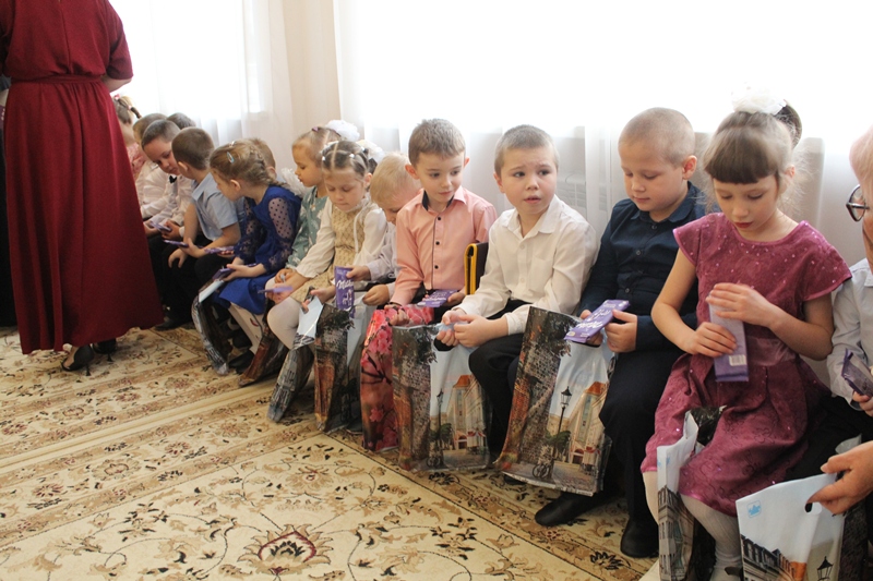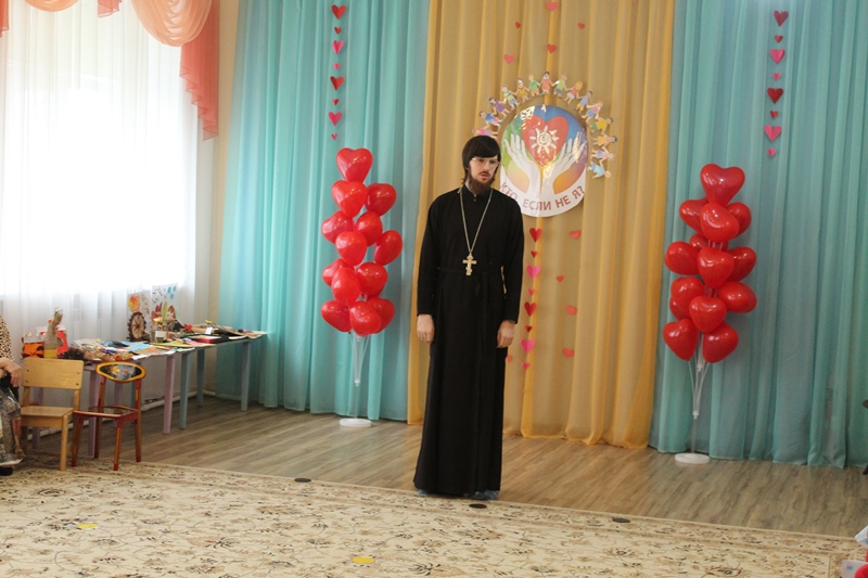 Далее к присутствующим обратился иерей Олег. В своем обращении он подчеркнул значимость взаимопомощи и поддержки, пожелал всем крепкого здоровья и помощи Божией, поблагодарил директора, воспитателей и преподавателей школы за их труды и, конечно же, вручил детишкам сладкие подарки. В свою очередь Ольга Николаевна выразила глубокую признательность священнослужителю за поддержку и вручила благодарственное письмо.