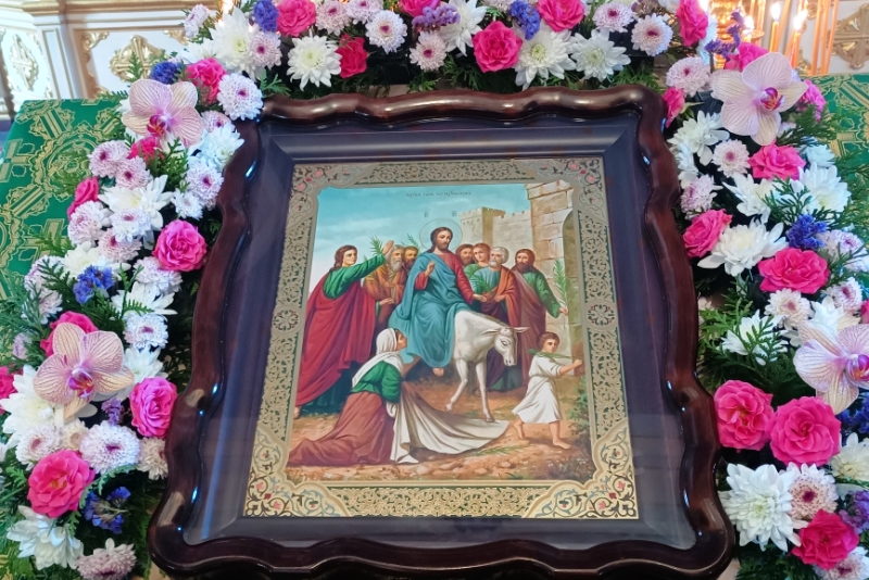 Все четыре евангелиста повествуют о Входе Иисуса Христа в Иерусалим за несколько дней до Его крестных страстей – Матфей (Мф. 21:7-11), Марк (Мк. 11:7-10), Лука (Лк. 19:36-38) и Иоанн (Ин. 12:12-15). Когда после чудесного воскрешения Лазаря Иисус Христос за шесть дней до Пасхи собрался для ее празднования идти в Иерусалим, то многие из народа с радостным чувством последовали за Иисусом, готовые сопровождать Его с торжественностью, с какою в древние времена на Востоке сопровождали царей. Первосвященники же иудейские, негодуя на Иисуса за то, что Он возбуждал к Себе необыкновенное почитание в народе, задумали убить Его, а также и Лазаря, «потому что ради него многие из Иудеев приходили и веровали в Иисуса». Но произошло неожиданное для них: множество народа, пришедшего на праздник, услышав, что Иисус идет в Иерусалим, взяли пальмовые ветви, вышли навстречу Ему и восклицали: «Осанна! Благословен грядущий во Имя Господне, Царь Израилев!» Многие подстилали свои одежды, срезали ветви с пальм и бросали по дороге, дети приветствовали Мессию. Уверовав в могущественного и благого Учителя, простой сердцем народ готов был признать в Нем Царя, который пришел освободить его.