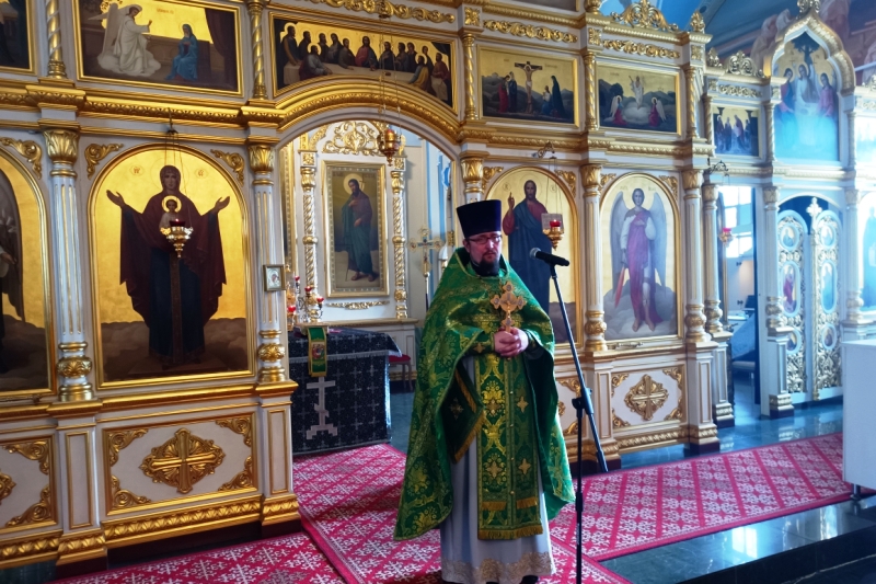 В завершении Литургии настоятель обратился к прихожанам с проповедью, в которой напомнил историю праздника и его духовное значение.