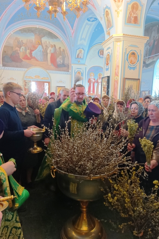 На утрени, по прочтении Евангелия, состоялся «чин освящения ваий», в нашей традиции – освящение верб. Прихожане очень любят это чинопоследование и с нетерпением его ожидают.