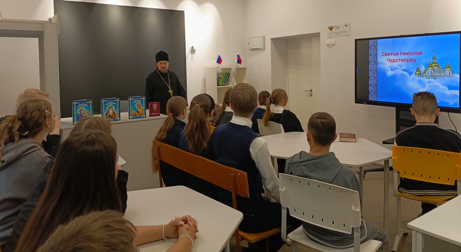 20 декабря в школе села Солдатское настоятелем храма Святителя Афанасия Александрийского игуменом Сергием (Рудневым) проведен урок, посвящённый памяти святителя Николая, архиепископа Мир Ликийских, чудотворца.
