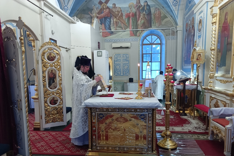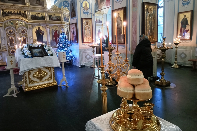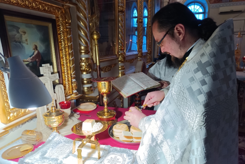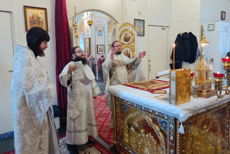 На сугубой ектении были произнесены особые прошения: «…о еже прияти молитвы нас, недостойных рабов Твоих, в сию годину испытания, пришедшую на Русь Святую…». Затем благочинным была произнесена молитва о Святой Руси, по благословению Святейшего Патриарха Московского и всея Руси Кирилла эта молитва возносится во всех храмах Русской Православной Церкви.