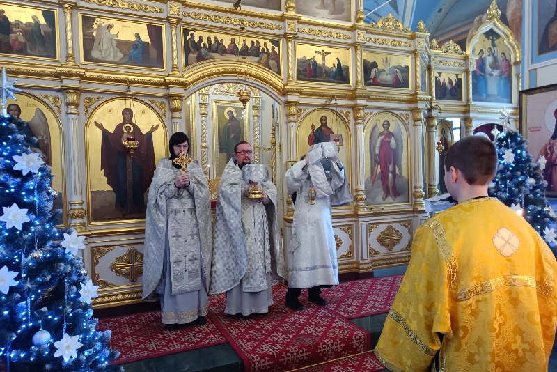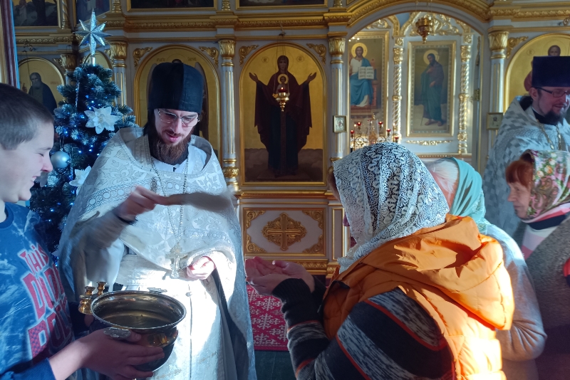 Накануне вечером 18 января было совершено Всенощное бдение, а 19 января – Божественная литургия. Совершил богослужение благочинный Острогожского церковного округа, настоятель храма иерей Алексий Курганский в сослужении клириков храма иерея Олега Потапова и иеродиакона Захарии (Касьянова).