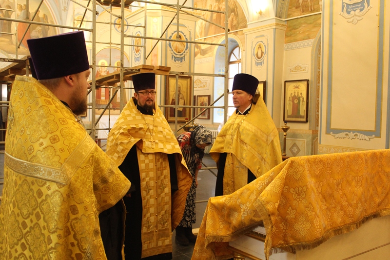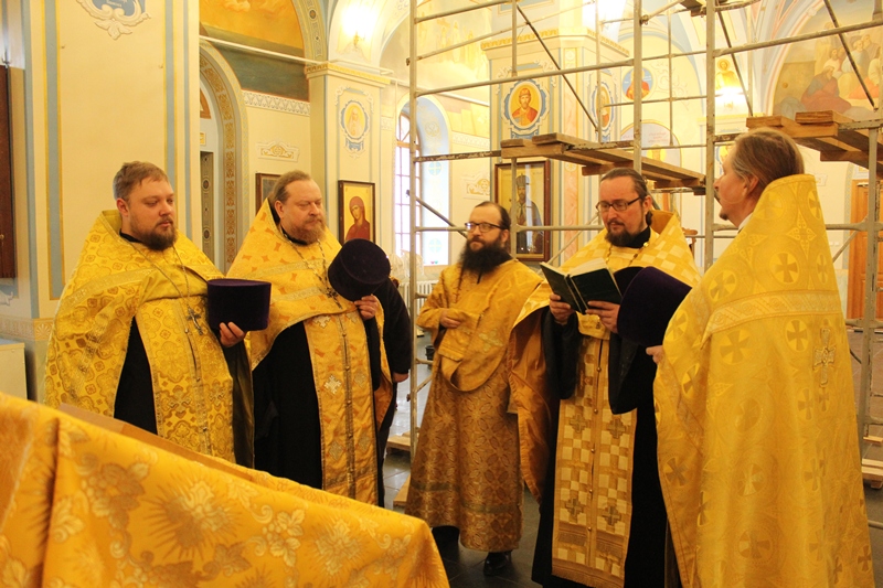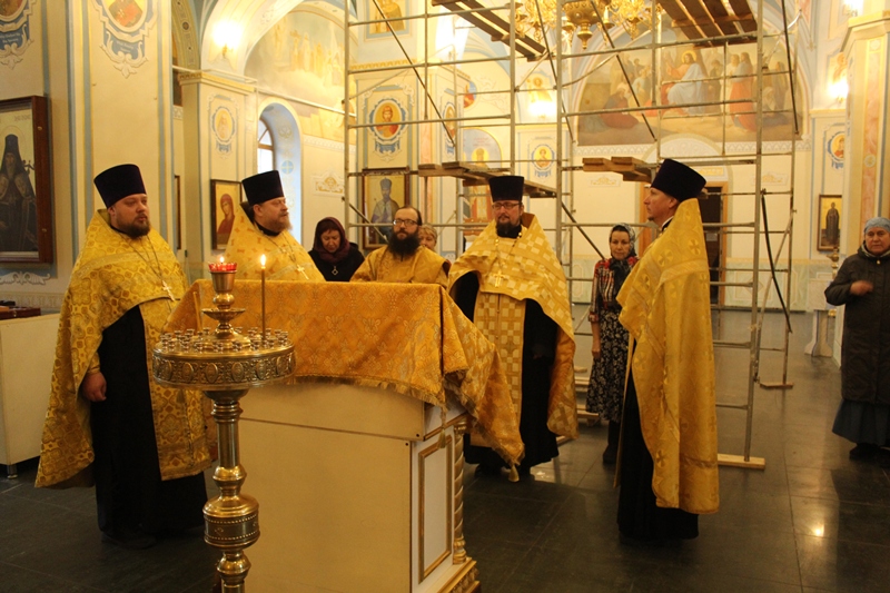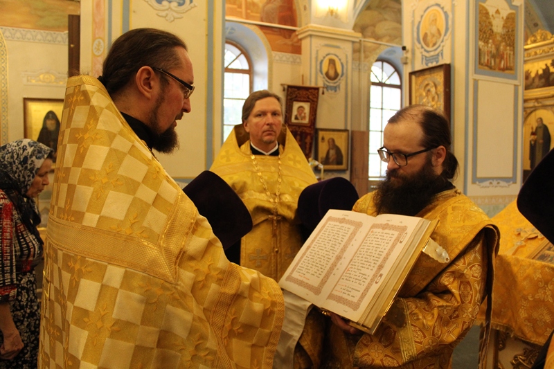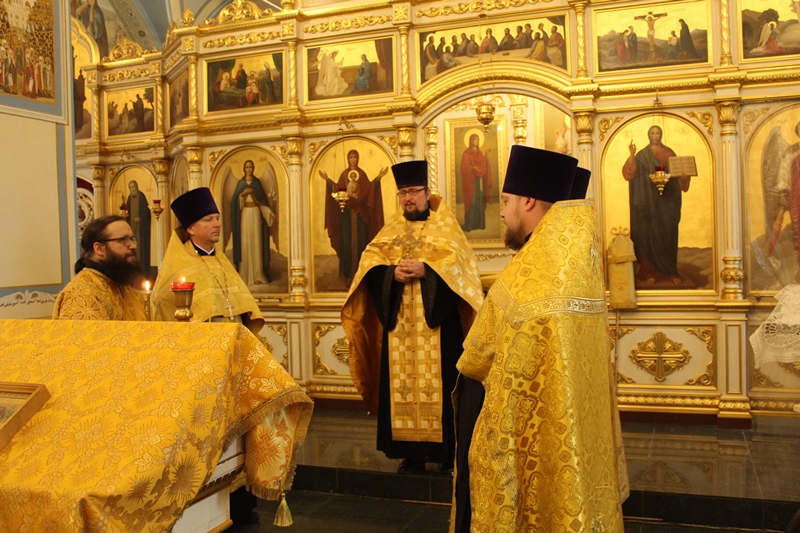 Богослужение возглавил благочинный Острогожского церковного округа, настоятель храма иерей Алексий Курганский в сослужении клириков благочиния: настоятеля храма Архистратига Божия Михаила города Острогожска протоиерея Владимира Шереметова, настоятеля храма Сретения Господня протоиерея Валерия Желнина, настоятеля храма иконы Божией Матери «Казанская» села Покровка иерея Андрея Рыбака и храма святителя Тихона Задонского города Острогожска иеродиакона Захарии (Касьянова).