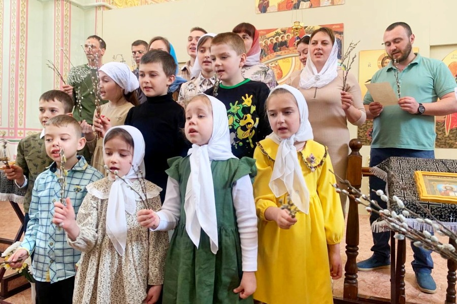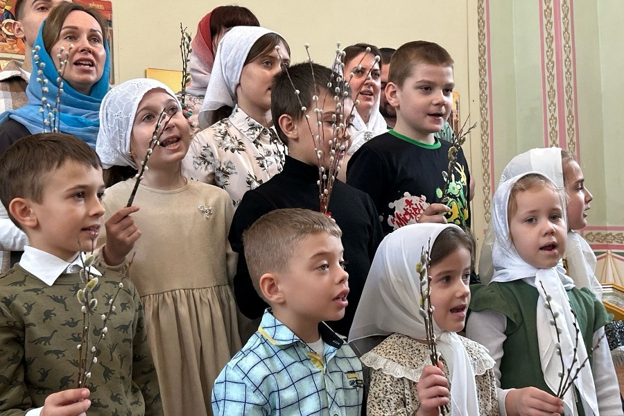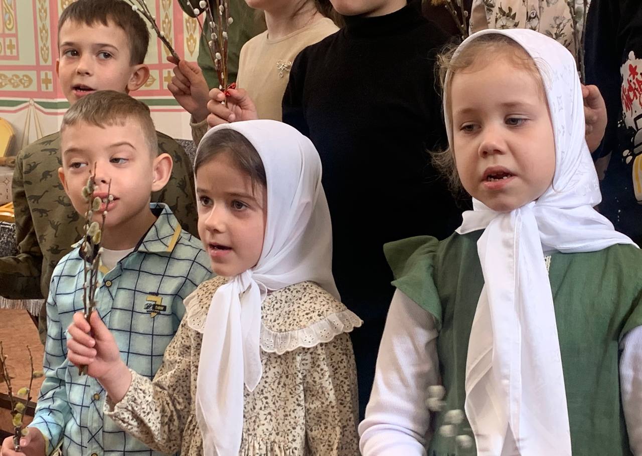 13 апреля в вербное воскресение всех прихожан храма Святого Духа села Петренково, которые собрались на божественную литургию, поздравили малыши, их папы, мамы и даже братья. Импровизированный хор подарил всем песню "Вербное воскресение", к исполнению которой присоединился и настоятель храма протоиерей Сергий. А как напоминание о наступлении страстной седмицы прозвучало стихотворение Е.Красновой "Вечер вербного воскресения".