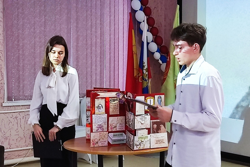 5 декабря конкурсанты защищали свои работы на конференции «Святые царственные страстотерпцы. Путь любви» на базе МБОУ СОШ № 7 города Россоши. Яковлев Матвей, Мельниченко Варвара, Маркушева Марина, Чехонадских Дарья, Бобринев Тихон, Ковалевский Артем и руководители проекта Летова Надежда Михайловна, директор, Чукина Ирина Викторовна, педагог Духовно-просветительского центра, представили проект: «Преемственность милосердия императорского дома Романовых». Оригинальное решение оформить информацию в виде лепбука было отмечено членами жюри.