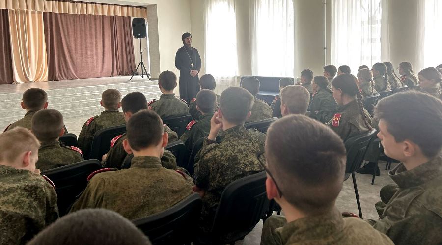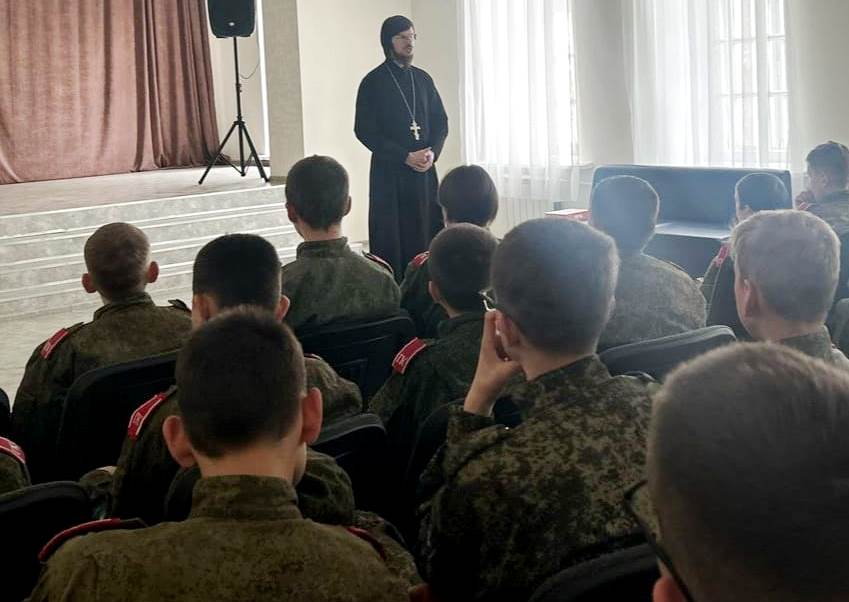 24 апреля клирик храма свят. Тихона Задонского иерей Олег Потапов встретился с воспитанниками казачьего кадетского корпуса. Священник рассказал преподавателям и учащимся о празднике праздников Светлом Христовом Воскресении, подчеркнув его значимость как для всего мироздания, так и для каждого верующего христианина. Напомнив слова Апостола Павла: "а если Христос не воскрес, то и проповедь наша тщетна, тщетна и вера ваша". В конце встречи были заданы вопросы и на каждый из ребята получили развёрнутый ответ.