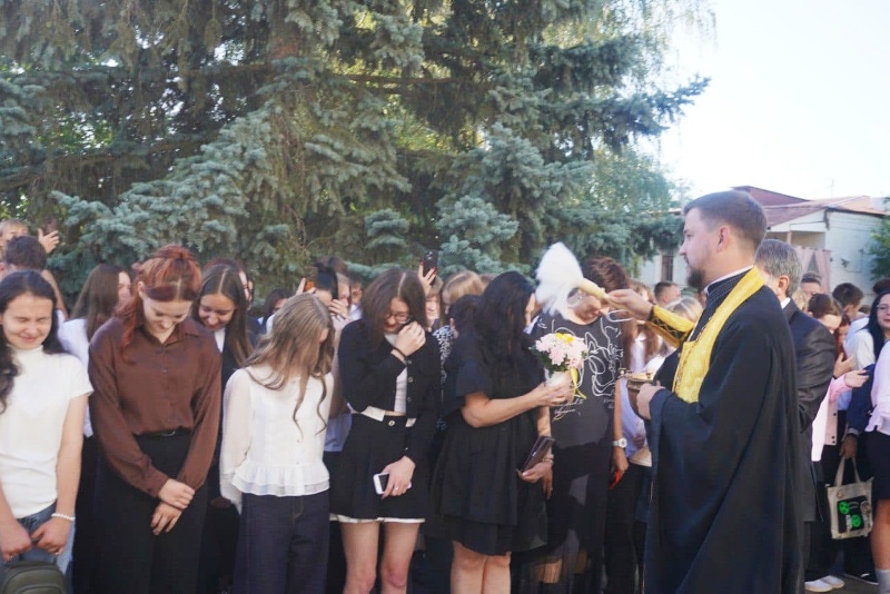 Священнослужители зачитали Обращение епископа Россошанского и Острогожского Дионисия по случаю Дня знаний и окропили учащихся, педагогов, родителей святой водой.