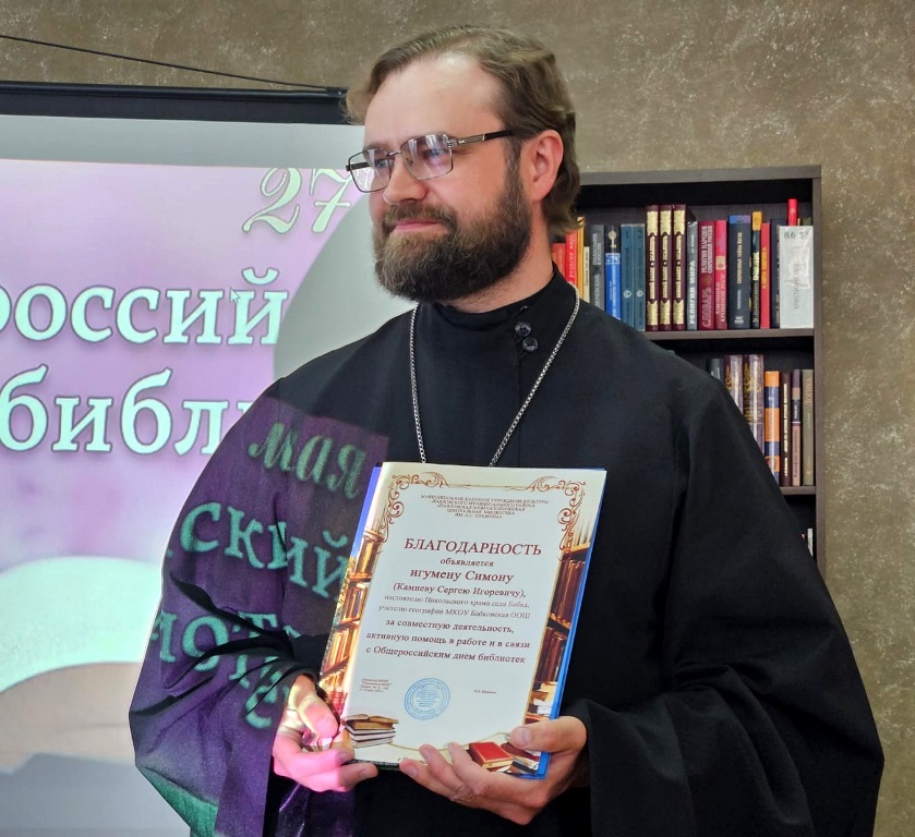 От лица духовенства Павловского благочиния выступил настоятель Никольского храма села Бабка игумен Симон (Камнев), который поздравил библиотекарей с профессиональным праздником, поблагодарил за сотрудничество с благочинием и пожелал всем Божией помощи во всех трудах и начинаниях.