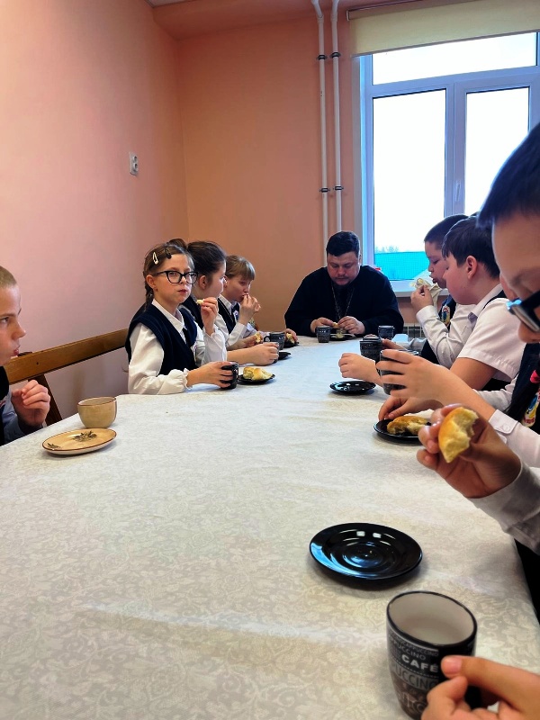 Настоятель Покровского храма г. Павловска иерей Иоанн Суздальцев познакомил ребят с историей праздника и рассказал о корнях традиции печь "жаворонков" в этот день. Отец Иоанн с воспитателем провели мастер-класс по изготовлению «птичек». Как только "жаворонки" испеклись, школьники могли отведать "птичек" на вкус за чаепитием со священником.