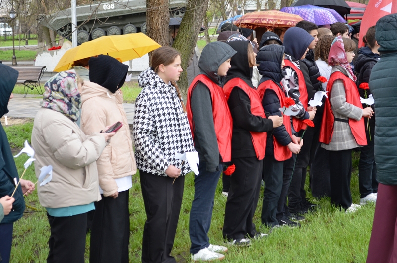 Участники почтили память погибших минутой молчания и возложили венки и цветы к мемориалу погибшим в мирное время.