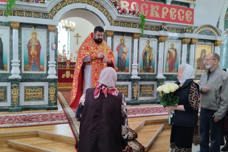 Представители приходского актива Казанского храма поздравили своего настоятеля с Днем Рождения и вручили букет цветов.
