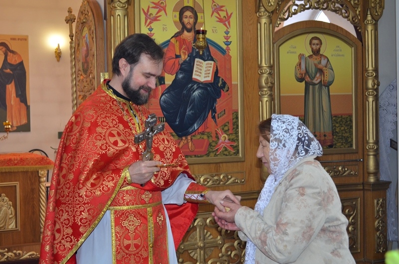 Отец Симон поздравил активную прихожанку храма Литвиненко Татьяну Михайловну с днём рождения и преподнёс в подарок богородичную просфору.