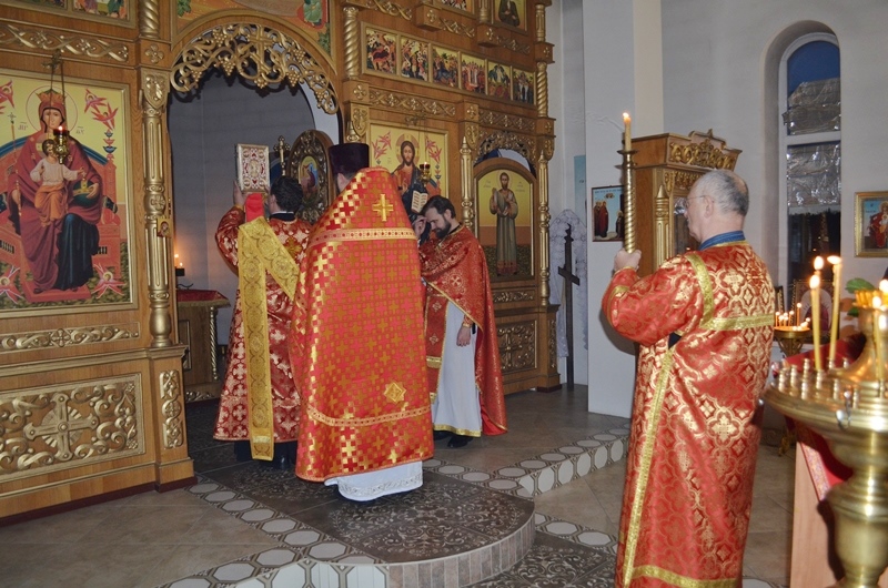 По окончании литургии отец благочинный кратко поведал житие св. вмц. Варвары и поздравил прихожан с престольным праздником.
