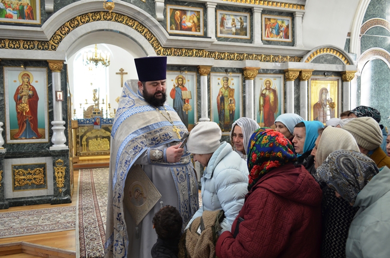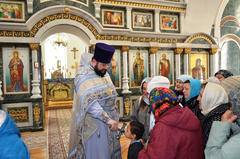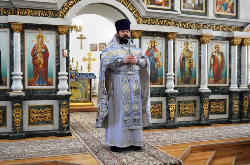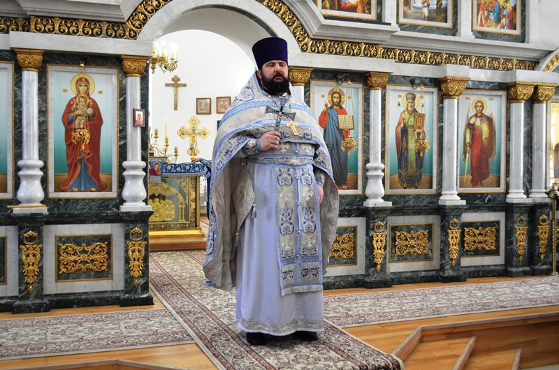 Затем отец Максим обратился к пастве с духовным наставлением, призвав к покаянию и изменению жизни через молитвенное заступничество Пресвятой Богородицы.