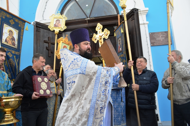 По традиции, в день престольного праздника, верующие прошли крестным ходом с иконами и хоругвями вокруг храма.