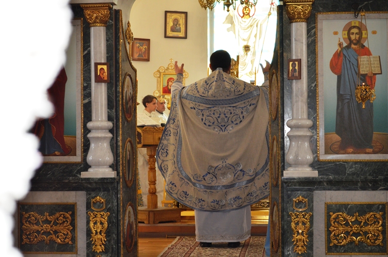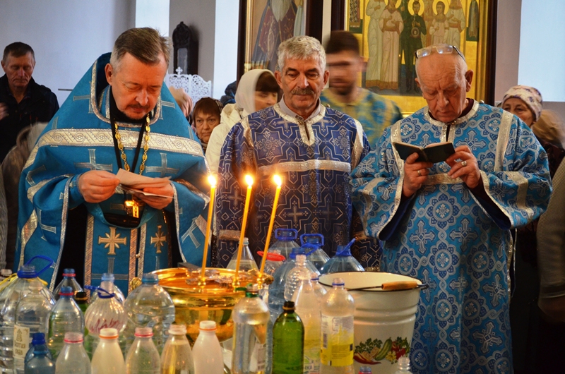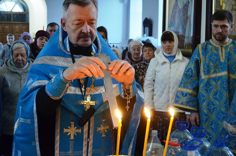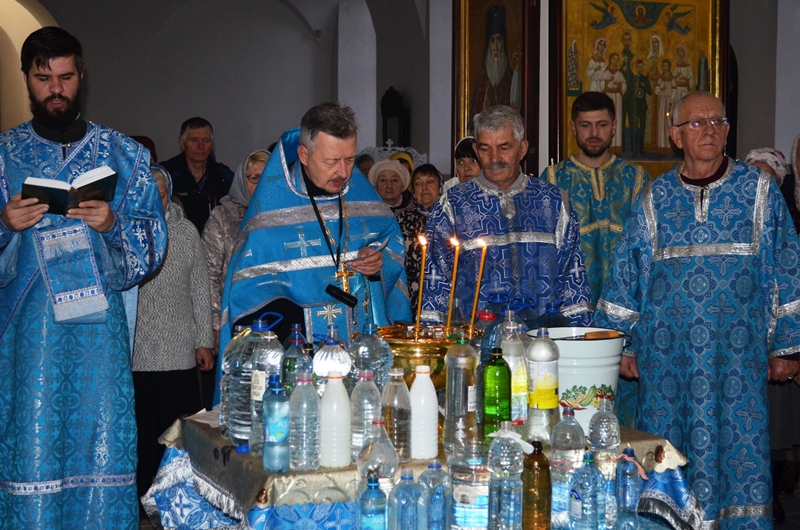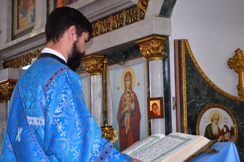 Водосвятный молебен на начало престольного торжества совершил клирик Казанского храма иеромонах Антоний (Зубов).