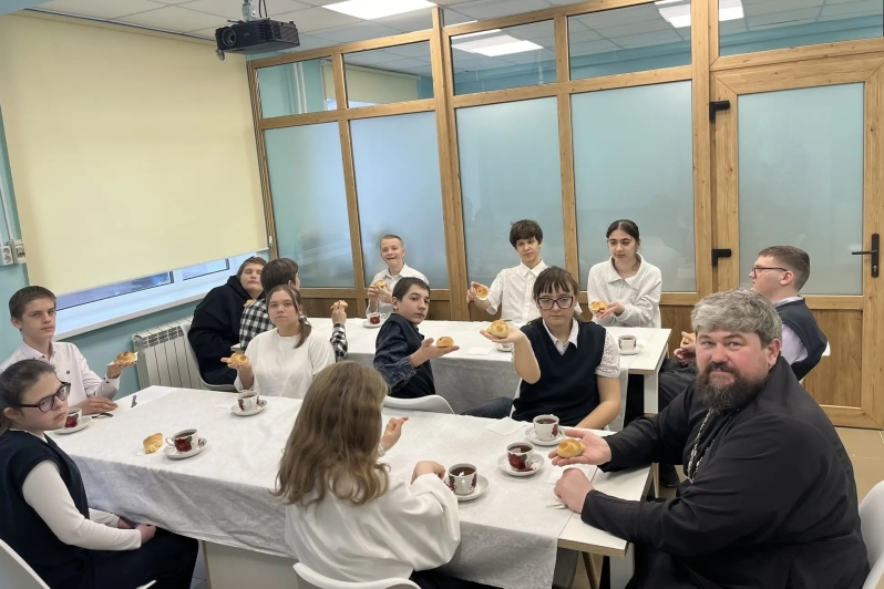Завершением встречи стал мастер‑класс по изготовлению традиционных «жаворонков» — обрядовых печений, символизирующих приход весны и память о Севастийских мучениках. Учащиеся с увлечением участвовали в процессе: лепили фигурки птиц из теста, украшали изделия, затем отведали свежеиспеченных «жаворонков» за дружеским чаепитием.