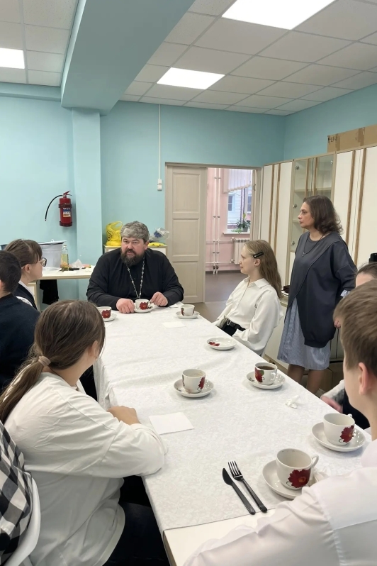 Далее беседа плавно перешла к теме патриотизма и любви к Отечеству. Отец Евгений провел параллели между подвигом древних мучеников и современными примерами служения Родине, подчеркнув, что истинная любовь к стране начинается с нравственной чистоты, ответственности и готовности отстаивать духовные ценности.