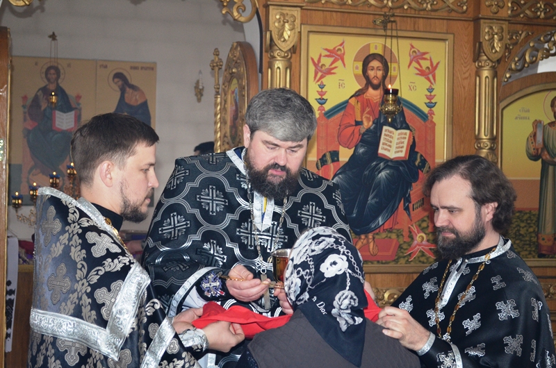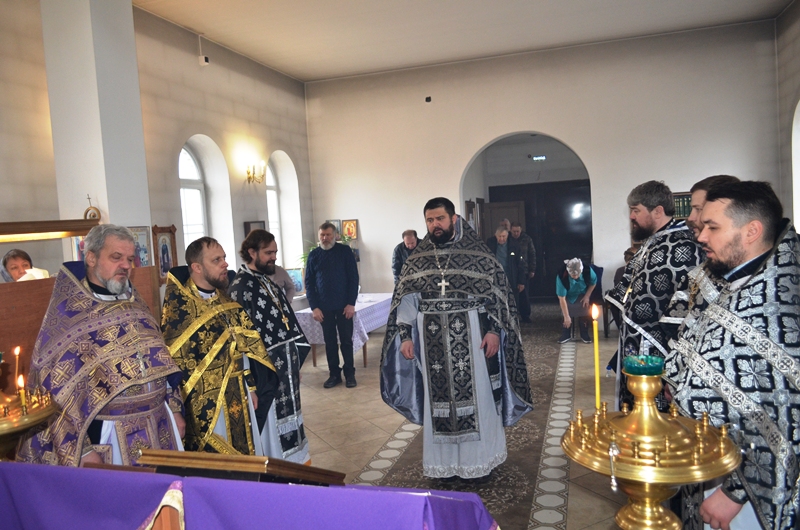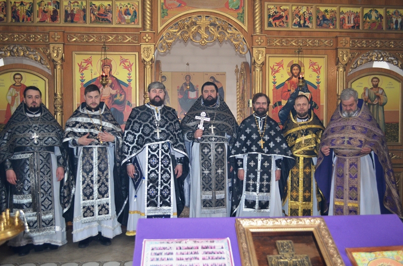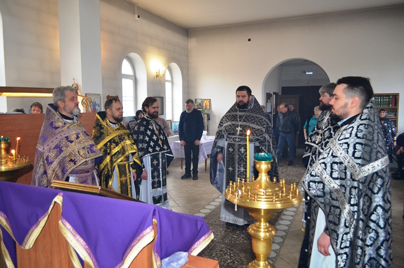 Возглавил Литургию Преждеосвященных Даров благочинный Павловского церковного округа иерей Максим Богомолов. Благочинному сослужили настоятель храма игумен Симон (Камнев), настоятель Покровского храма города Павловска протоиерей Евгений Бей, настоятель Михайло-Архангельского храма села Воронцовка иерей Виктор Семенов, настоятель храма Александра Невского села Петровка иерей Андрей Коротя, настоятель храма апостола Павла города Павловск иерей Павел Белов, клирик Казанского храма города Павловска иерей Димитрий Нога.