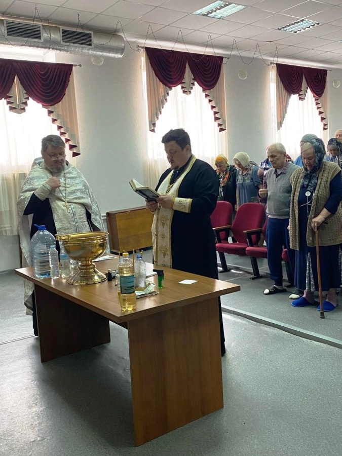 15 апреля, в Великий вторник Страстной седмицы, настоятель Покровского храма г. Павловск иерей Иоанн Суздальцев и настоятель Свято-Троицкого храма с. Елизаветовка иерей Михаил Рязанцев совершили таинство Соборования в Павловском госпитале для ветеранов войн.