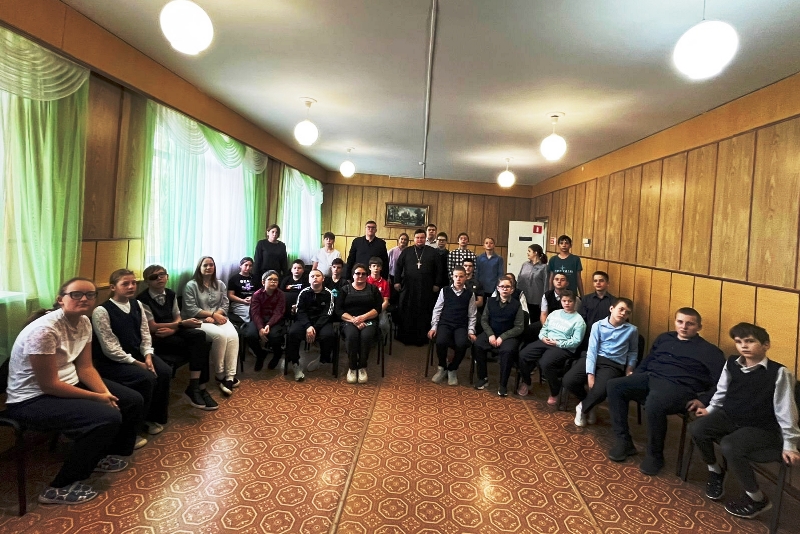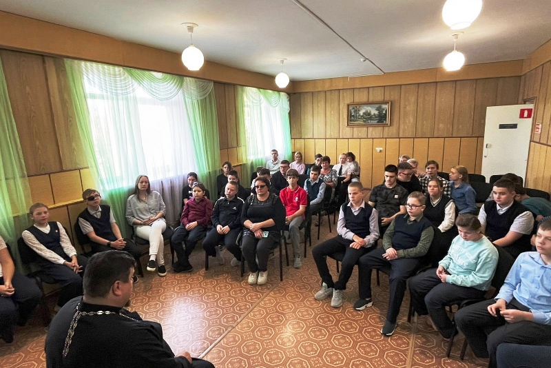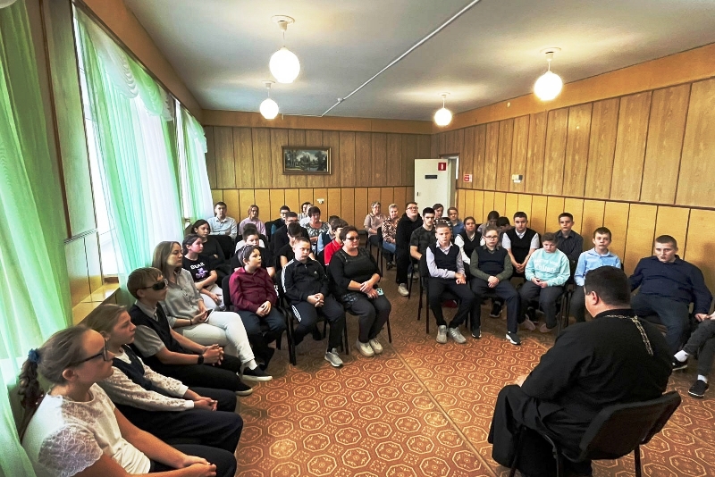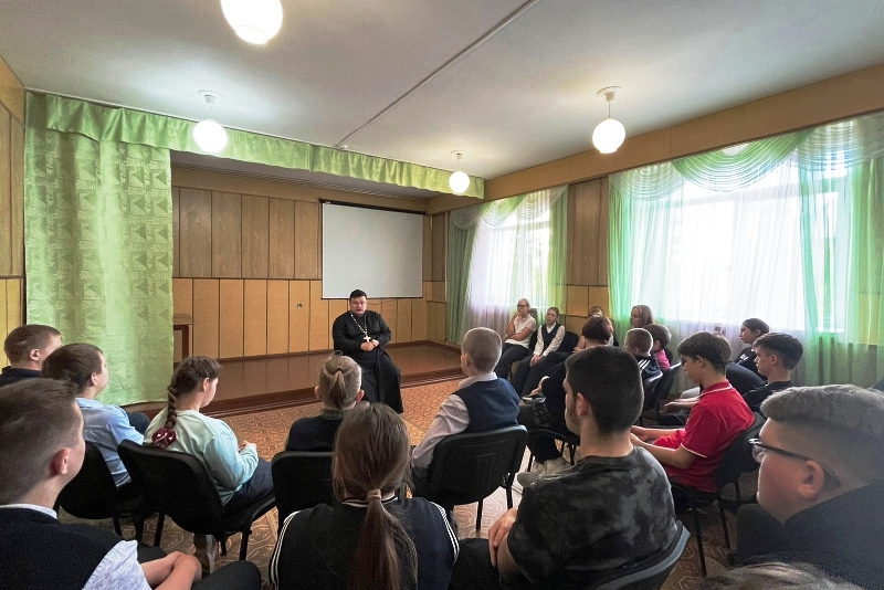 Священник рассказал ученикам о празднике Покрова Пресвятой Богородицы, а также обсудил с ними традиционные семейные ценности.