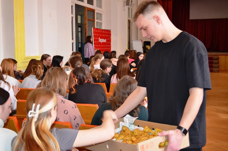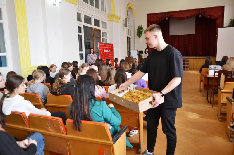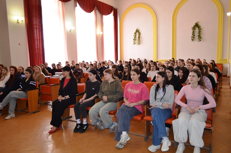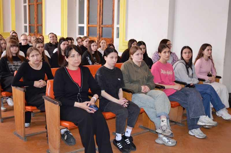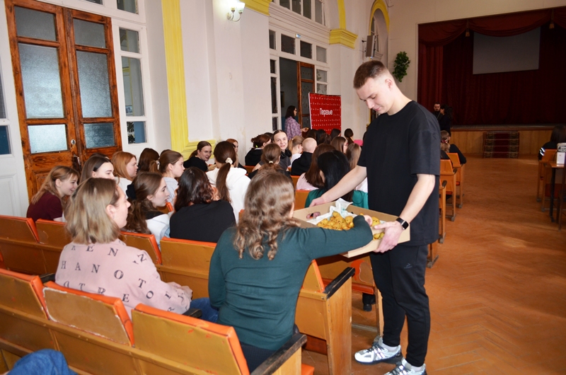 В актовом зале педколледжа собралось более 120 учащихся, а также преподаватели учебного заведения.