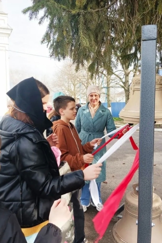 В Покровском храме все приложились к иконам Божией матери Павловской «Знамение» и Ахтырской. И, конечно, устроили Пасхальный перезвон во дворе храма в новые и недавно освященные Владыкой колокола с образами святых.