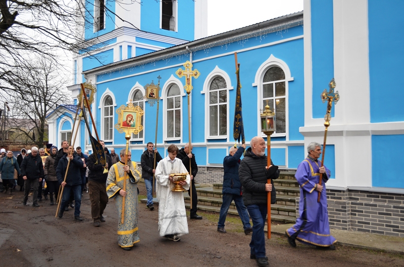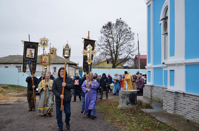 Крестным ходом окрест храма обошли богомольцы с духовенством.