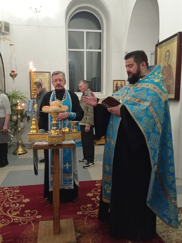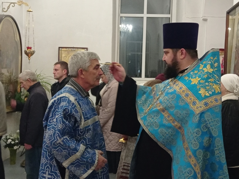 За богослужением была совершена лития с освящением хлеба, вина и елея, а далее отец Максим помазал молящихся освященным елеем.