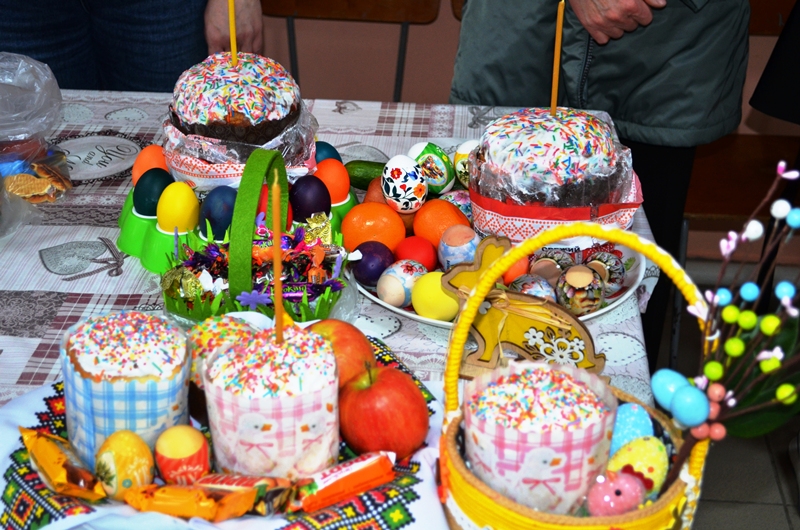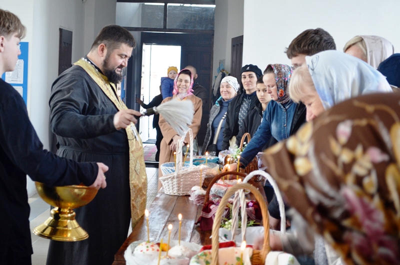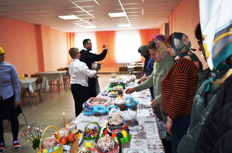 Отец Димитрий поздравил педагогов, воспитателей и учащихся с приближающимся праздником Пасхи и окропил святой водой пасхальные яства.