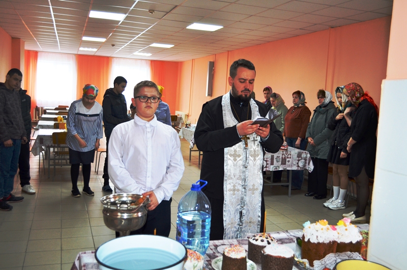 В этот же день в КОУ ВО «Павловская школа-интернат №1» (школа слабослышащих) клирик Казанского храма города Павловска иерей Димитрий Нога освятил куличи и яйца.