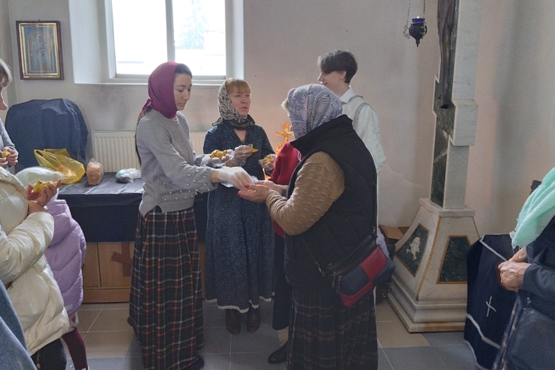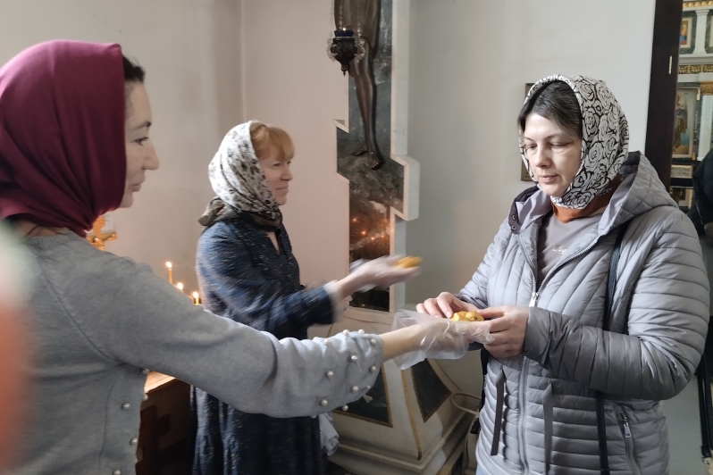 По окончании богослужения прихожан угостили традиционным символом праздника — жаворонками, которые с любовью напекли просфорницы храма.