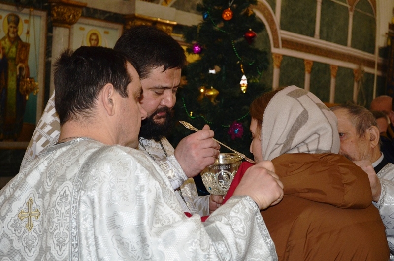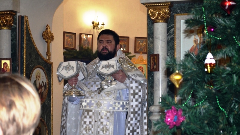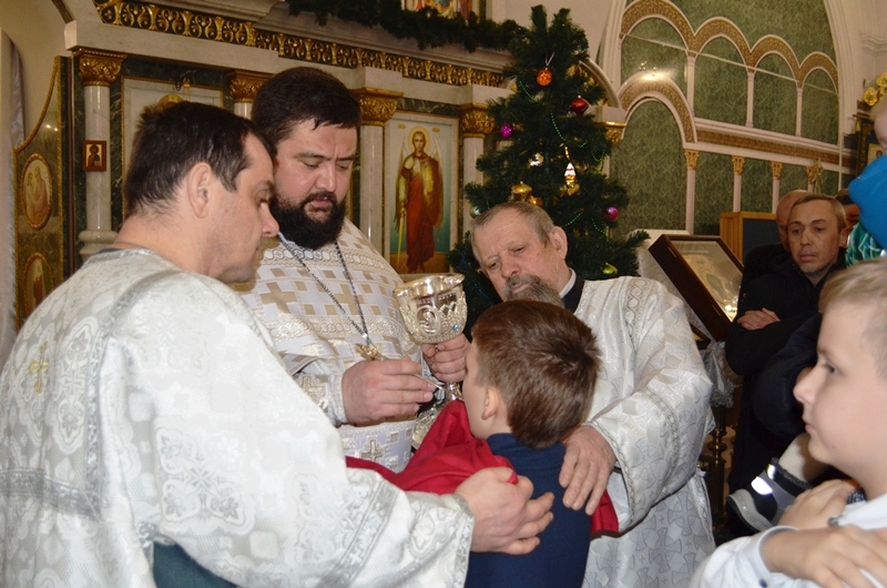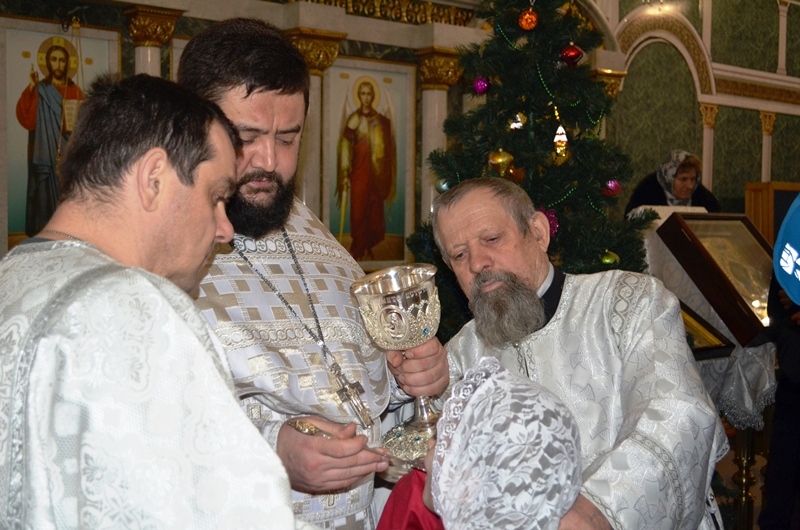 По запричастном стихе огласили с амвона Рождественские послания Святейшего Патриарха Московского и всея Руси Кирилла и Преосвященнейшего Дионисия, епископа Россошанского и Острогожского.