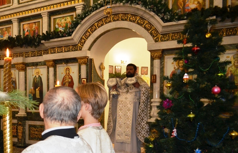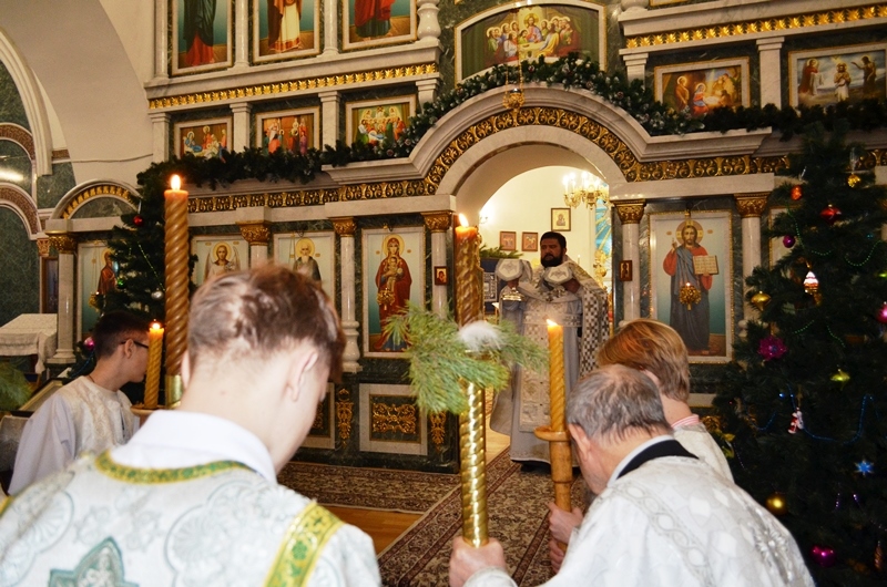 В завершение Богослужения отец Максим обратился к прихожанам с Рождественским поздравлением: «Христос пришел в этот мир, чтобы быть с каждым из нас. Давайте радоваться этому и стремиться творить добро, чтобы Христос жил в наших сердцах, мыслях, желаниях и делах. Как говорили святые отцы, Христос стал человеком, чтобы человек мог стать Богом».