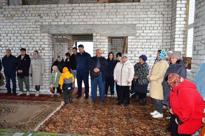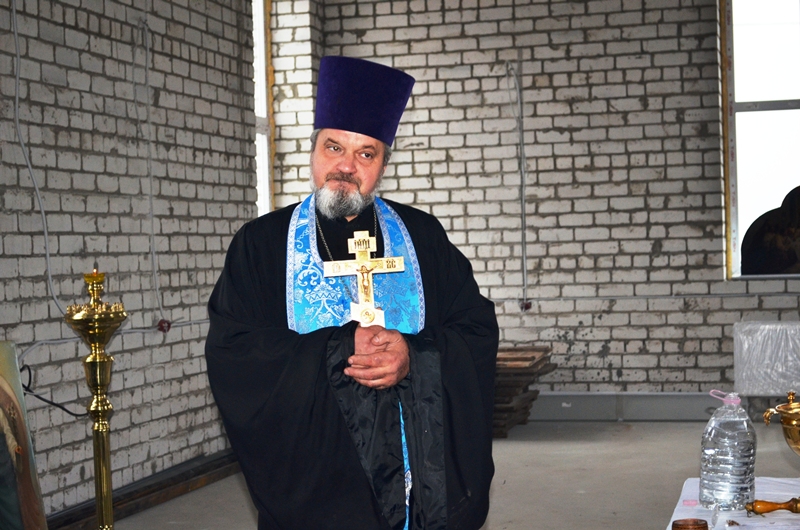 Отец Вячеслав преподнес в дар приходу строящегося храма старинную икону Божией Матери «Всех скорбящих Радость» и призвал совершать еженедельные богослужения в храме.