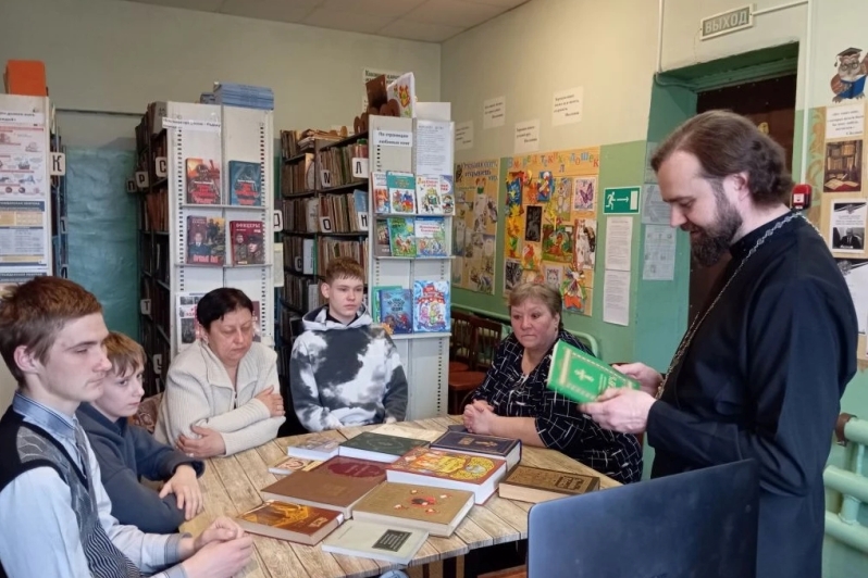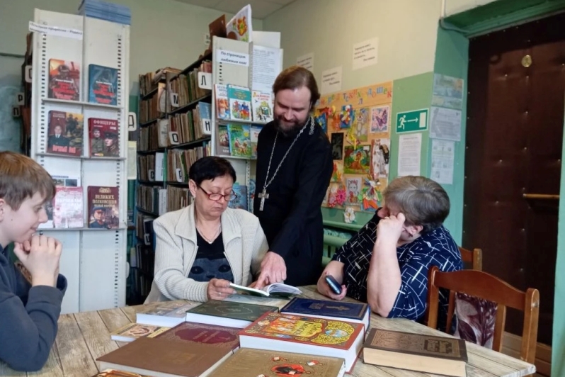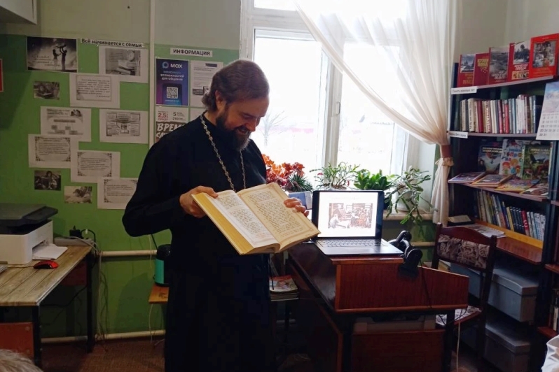 17 марта в Бабковской сельской библиотеке настоятель Никольского храма села Бабка игумен Симон (Камнев) для гостей библиотеки провел беседу о празднике, напомнил историю книгопечатания на Руси, познакомил с богослужебными книгами и предложил попробовать почитать на церковнославянском языке.