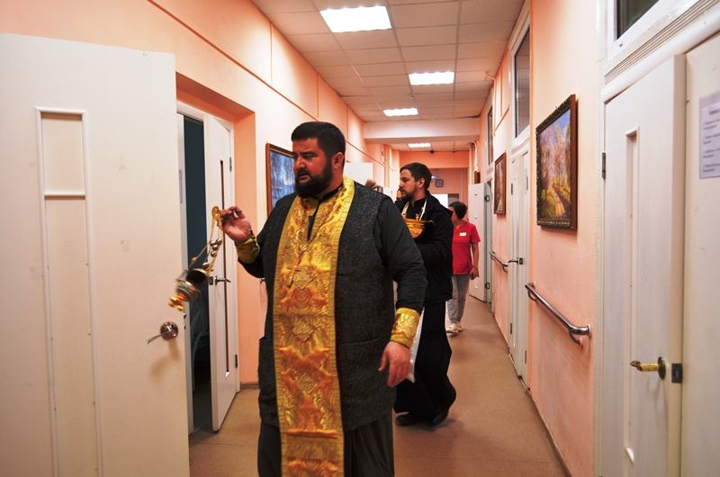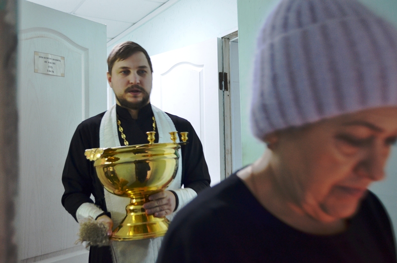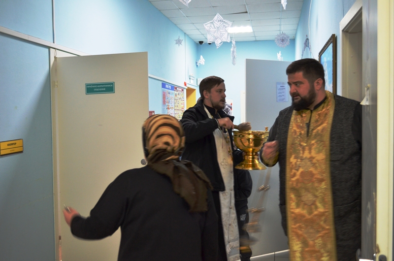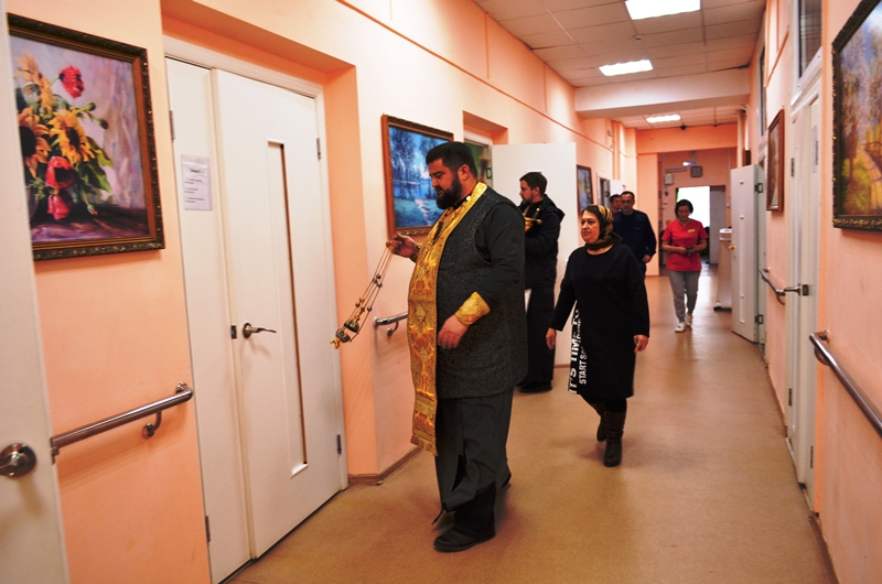 В обоих корпусах дома-интерната священники совершили каждение и окропили святой водой.