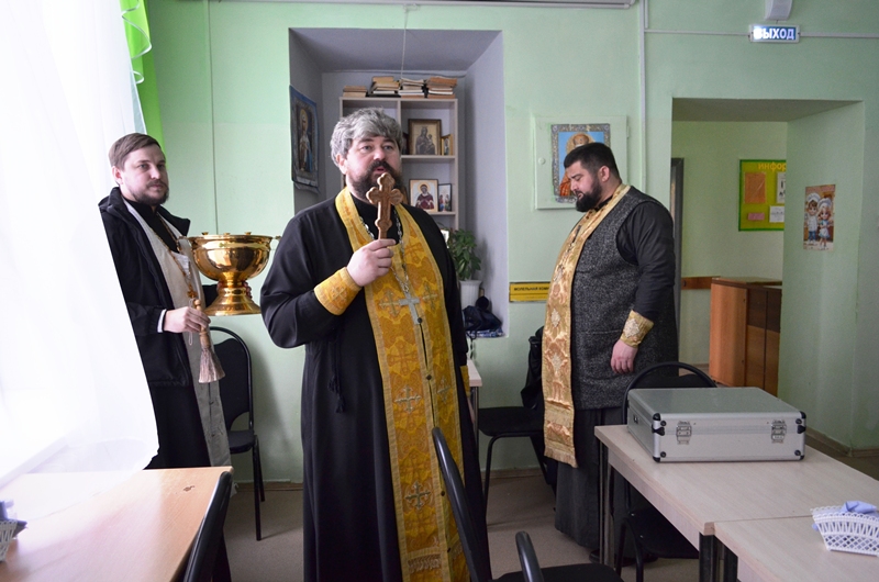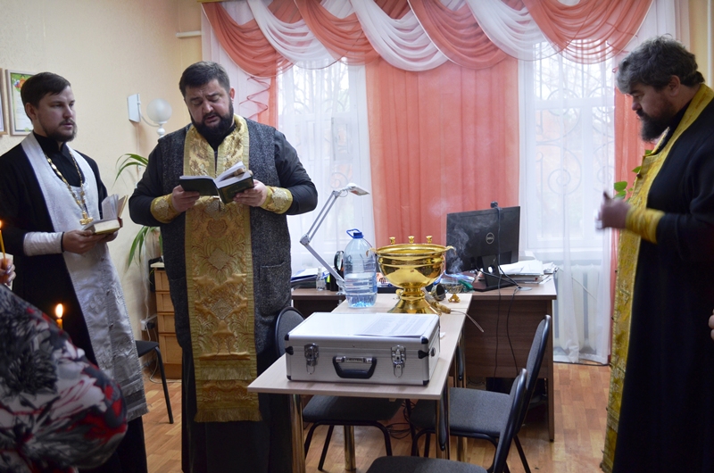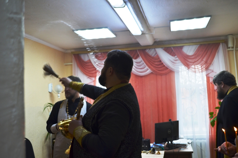 Чин освящения помещения совершили благочинный Павловского церковного округа иерей Максим Богомолов, настоятель Покровского храма города Павловска протоиерей Евгений Бей, настоятель храма апостола Павла города Павловска иерей Павел Белов.