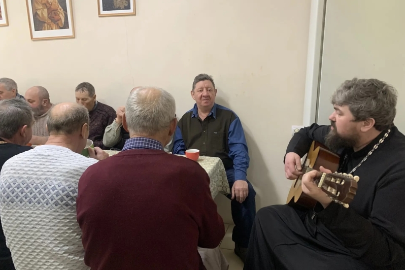 В завершение встречи протоиерей Евгений под звучание гитары исполнил несколько песен.