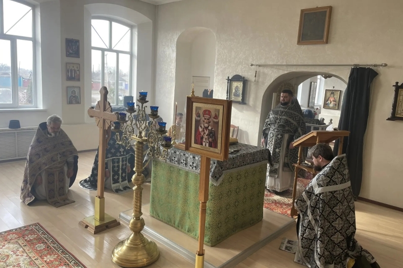 Возглавил Литургию Преждеосвященных Даров благочинный Павловского церковного округа иерей Максим Богомолов. Благочинному сослужили настоятель храма иерей Виктор Семенов, настоятель Никольского храма села Бабка игумен Симон (Камнев), настоятель Покровского храма города Павловска протоиерей Евгений Бей, настоятель храма Александра Невского села Петровка иерей Андрей Коротя, настоятель храма апостола Павла города Павловск иерей Павел Белов.