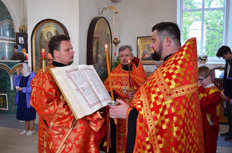 21 мая вечером, в канун дня Перенесения мощей святителя и чудотворца Николая из Мир Ликийских в Бар, благочинный Павловского церковного округа иерей Максим Богомолов возглавил служение Всенощного бдения в Казанском храме г. Павловска.