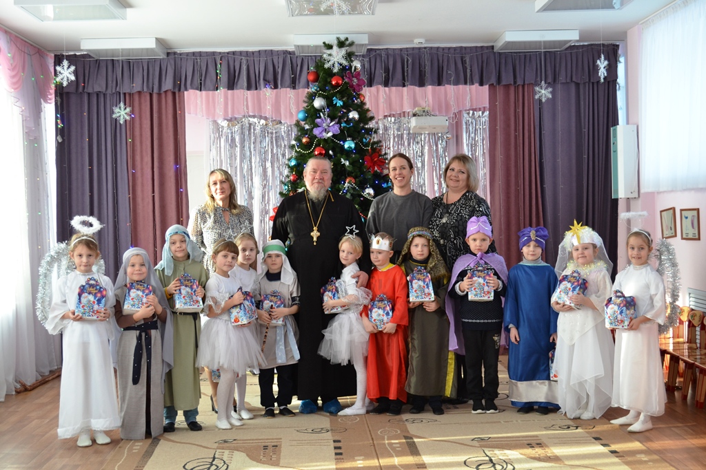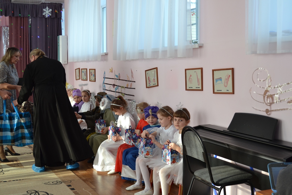На празднике присутствовал протоиерей Алексий Чибисов – благочинный Репьевского церковного округа, настоятель местного храма святых апостолов Петра и Павла. В ходе мероприятия священнослужитель обратился к собравшимся с приветственным словом, в котором поздравил всех с Рождеством Христовым, а затем вручил участникам праздника сладкие подарки.