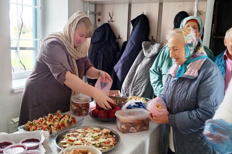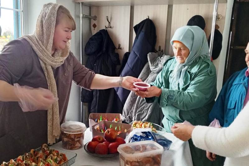 Праздник закончился продуктовой ярмаркой и трапезой.