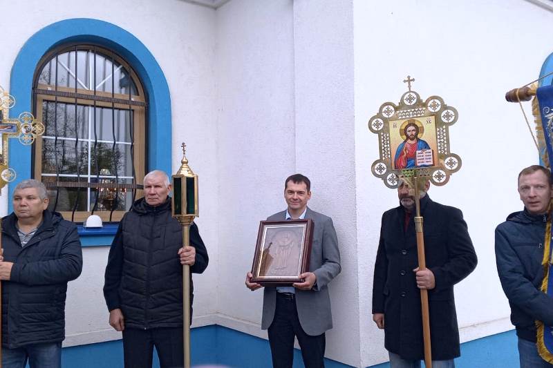 Праздничный молебен возглавил благочинный Репьевского церковного округа протоиерей Алексий Чибисов, который тепло поприветствовал настоятеля и всех собравшихся богомольцев с этим великим праздником, а Дмитрию Вячеславовичу преподнес в подарок искусно сделанную мастерами икону Спасителя.