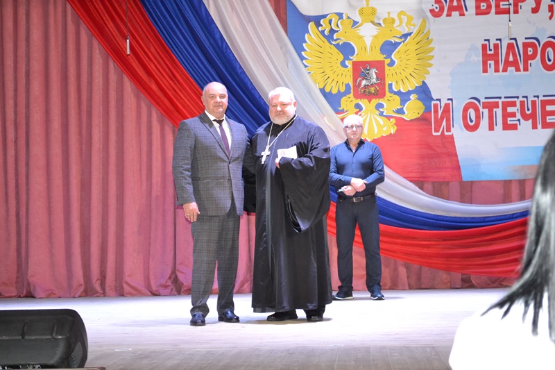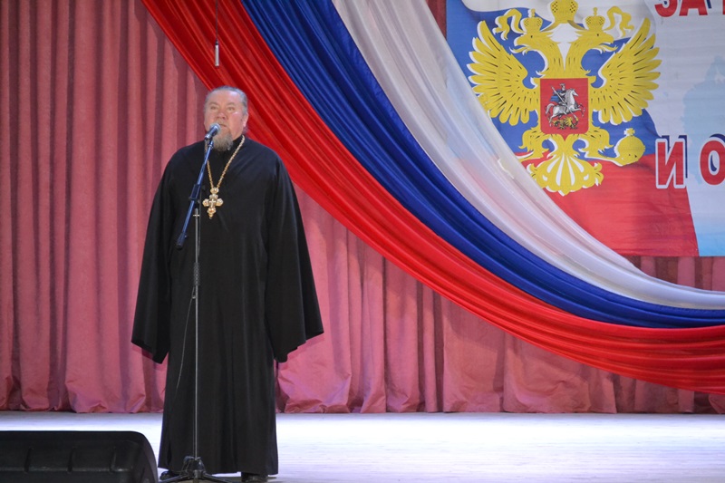 На праздничном мероприятии присутствовал и благочинный Репьевского церковного округа протоиерей Алексий Чибисов. Он выступил перед собравшимся в зале с приветственным адресом от Преосвященнейшего Дионисия, епископа Россошанского и Острогожского, а также от себя лично поздравил всех с праздником Казанской Божией Матери и Днём народного единства.