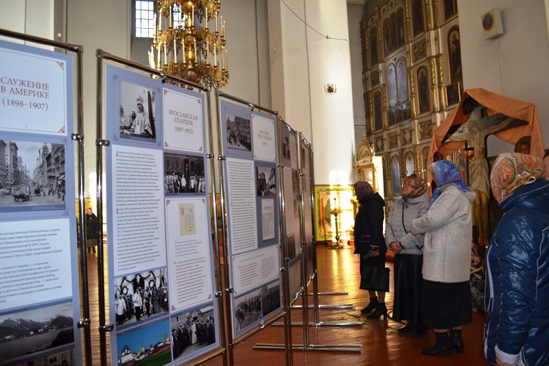Прихожане с особым вниманием изучали представленные им стенды с жизнеописанием святителя.