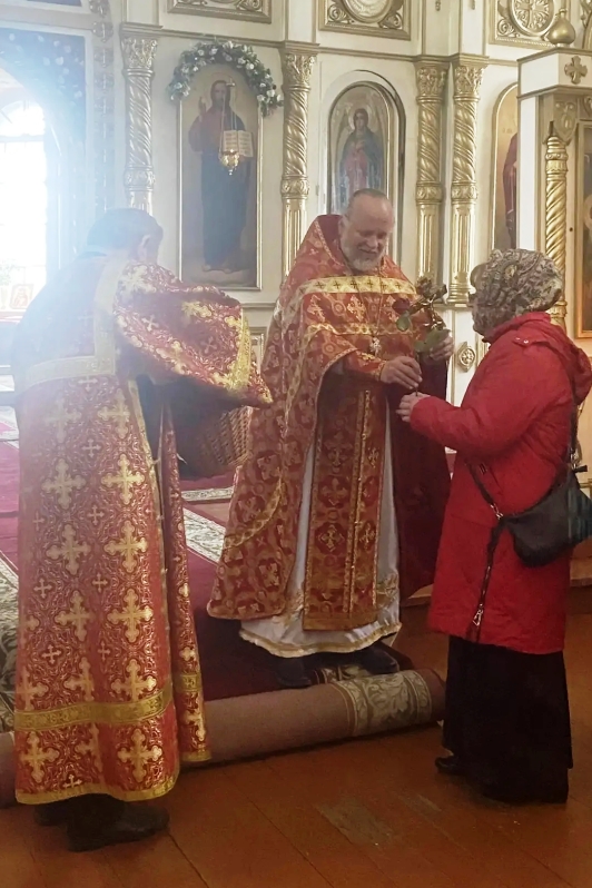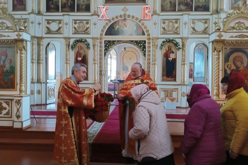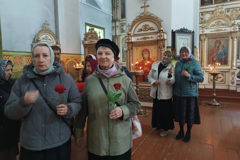 Затем отец Иоанн передал женщинам-прихожанкам теплые слова поздравления от благочинного Репьевского церковного округа, настоятеля Петропавловского храма протоиерея Алексия Чибисова, и каждой из них вручил живые цветы – розы.